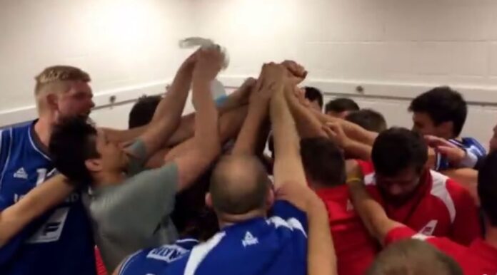 Þjálfarar íslenska liðsins héldu góðar ræður í búningsklefanum eftir leik. Gott pepp fyrir leikinn gegn Bosníu eftir viku. “Því ekki að vinna bara Bosníu?!”