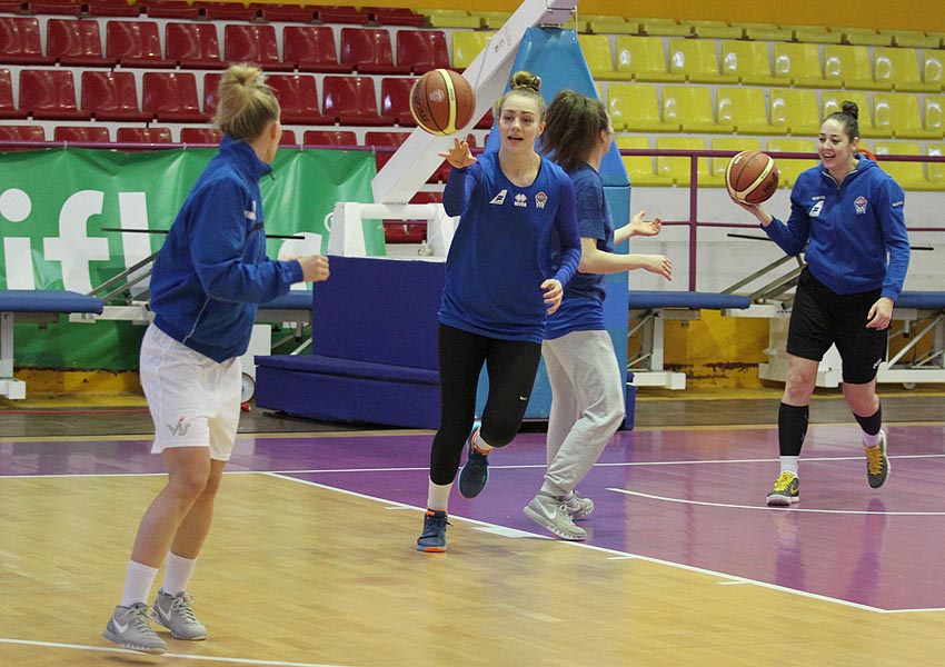 Ísland mætir Portúgal annað kvöld í þriðja leik sínum í forkeppni EuroBasket 2017. Íslenska liðið æfði tvisvar sinnum í Portúgal í dag en á síðari æfingunni fór lítið fyrir Rögnu Margréti Brynjarsdóttur sem þarf að fara vel með sig vegna liðþófameiðsla.