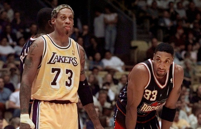 Mynd: Rodman með Lakers í gamla daga og margir eflaust búnir að gleyma því þegar Pippen tók sprettinn með Houston Rockets.