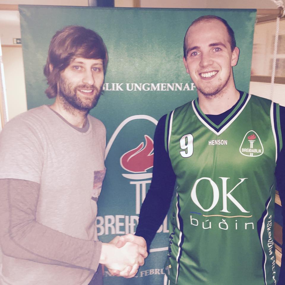 Mynd: HJ Rúnar Ingi og Jónas þjálfari Blika handsala samningi