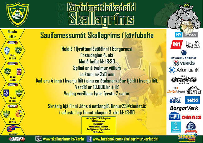 Föstudaginn 4. október næstkomandi fer fram Sauðamessumót Skallagríms í íþróttamiðstöðinni í Borgarnesi, Fjósinu. Mótið hefst kl. 18:30 en leikið er á tveimur völlum, 2×8 mínútur.