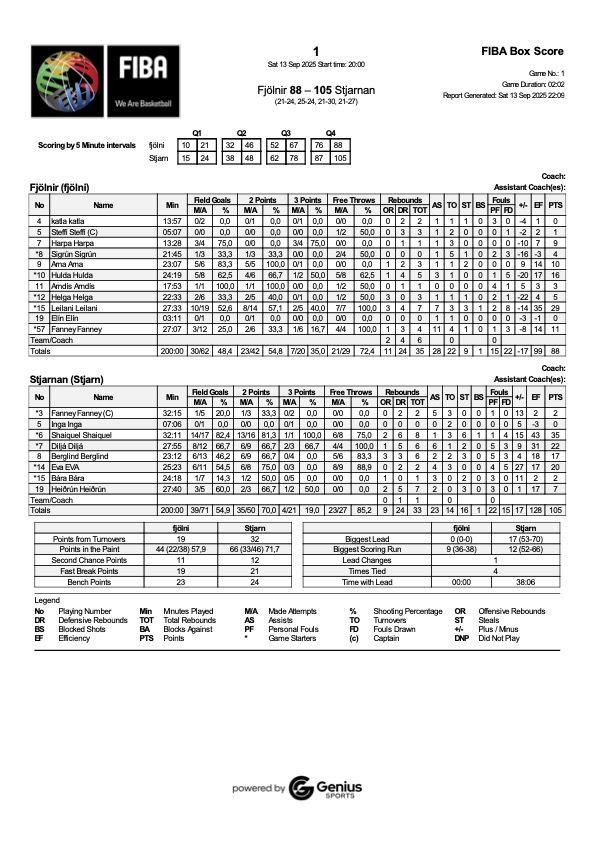 Stigahæst fyrir Stjörnuna í leiknum var Shaiquel McGruder með 35 stig á meðan Leilani Kapinus var stigahæst fyrir Fjölni með 29 stig.