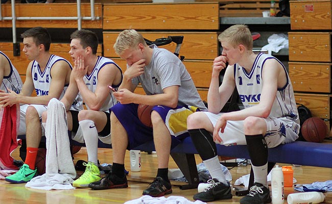 Myndir/ Á efri myndinni er Jón djúpt sokkinn í símann sinn, enda skrugguflottur sími. Á þeirri neðri kemur hann tækinu haganlega fyrir í vasanum á stuttbuxunum. Við erum vitaskuld aðeins að gantast í Jóni enda hefur körfuknattleikurinn verið duglegur að tileinka sér tæknina við sína íþrótt. Skemmst er þess að minnast að Falur Harðarson notaði spjaldtölvu þegar hann stýrði liði Keflavíkurkvenna, hver veit nema í einhverjum leiknum hann hafi skellt sér í smá Candy Crush…