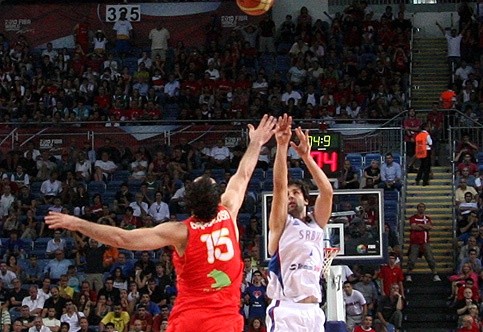 Milos Tedosic reyndist hetja Serba þegar hann smellti niður þrist er þrjár sekúndur voru til leiksloka. Spánverjar náðu ekki að svara í næstu sókn þar sem þeir misstu boltann og Serbar fögnuðu sigri. Marko Keselj og Novica Velickovic voru atkvæðamestir í liði Serba báðir með 17 stig en hjá Spánverjum var Juan Carlos Navarro með 27 stig og 5 stoðsendingar.