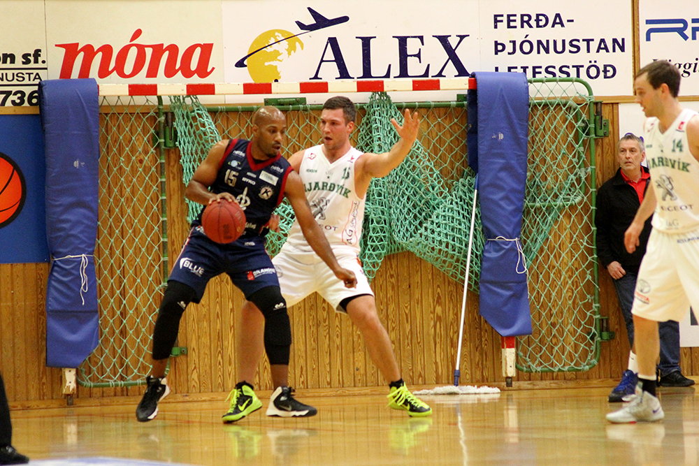 Mynd/ Davíð Eldur – Damon sækir að Hirti í fyrri leik liðanna á tímabilinu.