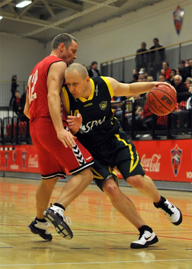 Ljósmynd/ Tomasz Kolodziejski: Sigmar til varnar í oddaleiknum, Konrad Tota sækir að.