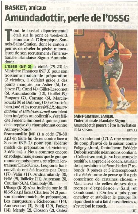 Í grófum dráttum sagt þá er Sigrún að leika vel og fellur vel að liðsheild Saint-Gratien. ,,Hin vinalega Amundadottir er perla liðsins,” segir í greininni. Þá segir undir myndinni af Sigrúnu sem fylgir greininni að hún sé uppgötvun tímabilsins.