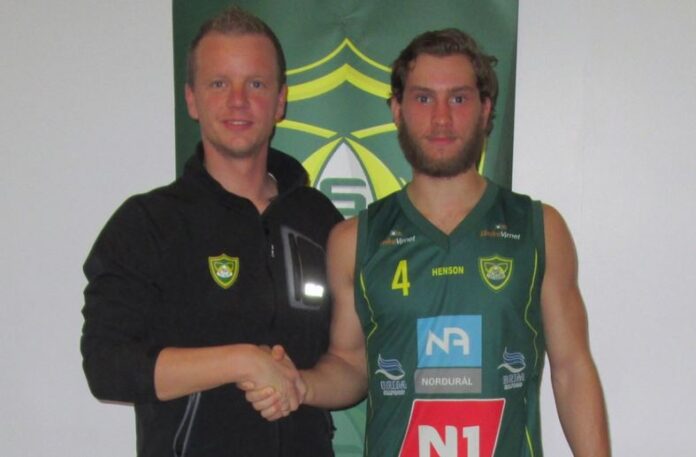 Myndir: Arnar Víðir, formaður kkd. Skallagríms og Sigtryggur Arnar skrifa undir og handsala samninginn. (Haraldur Már Stefánsson)