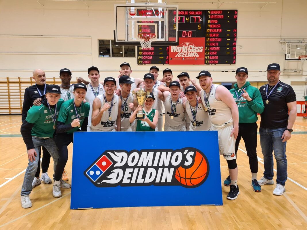 Breiðablik lagði Skallagrím nokkuð örugglega í gærkvöldi í Smáranum í fyrstu deild karla, 121-77. Breiðablik hafði tryggt sér deildarmeistaratitilinn með sigri í leiknum á undan og fengu bikarinn afhentan eftir leik í gær. Með titlinum fylgir bein ferð upp í Dominos deildina, þar sem þeir munu leika á næsta tímabili.