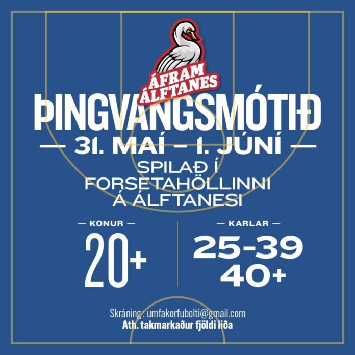 Körfuknattleiksdeild Álftaness kynnir Álftanesmót Þingvangs 2024. Haldið verður eldri flokka mót hér í Forsetahöllinni föstudaginn 31.maí og laugardaginn 1.júní, beint í kjölfar útslitakeppninnar í Subway deildunum.