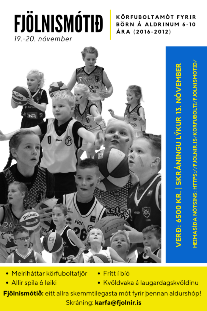 Helgina 19.-20. nóvember verður Fjölnismótið haldið í Grafarvoginum, í Dalhúsum og Egilshöll. Mótið er fyrir minnibolta, 6-10 ára krakka. Boðið verður upp á körfuboltafjör og skemmtun, 5-6 leikir á lið, bíóferð, blysför, kvöldvöku og fleira. Skráningafrestur er til 13. nóvember.