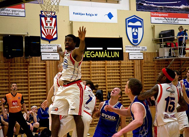 Hjá Snæfell var Jey Treet með 21 stig/8 frák., Pálmi setti 15 stig, Sveinn Arnar 12, McQueen 12/8 frák., Stefnán Karl 10, Nonni Mæju 9, Hafþór Ingi og Ólafur Torfa sín hvor 5 stigin.