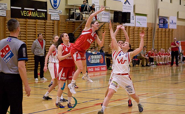 Hildur Sigurðardóttir hafði sett 14 stig en næstar voru Hildur Björg og Eva Margrét með sín hvor 6 stigin. Í liði Hauka var Lele Hardy með 9 stig og 10 fráköst en Margrét Rósa 8 stig.