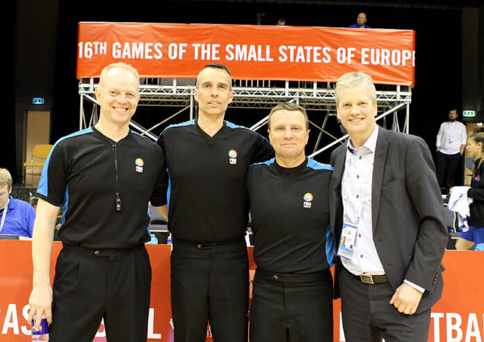 Söguleg stund var í Laugardalshöll í kvöld þegar þegar íslenskt FIBA-dómarateymi dæmdi viðureign Lúxemborgar og Möltu á Smáþjóðaleikunum í kvennakörfuknattleik. Var þetta í fyrsta sinn sem alþjóðlegur körfuboltaleikur fer fram með íslensku dómarateymi.