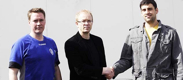 Á myndinni er lengst til vinstri Gunnar Sverrisson þjálfari ÍR, Gunnar Þór Gunnarsson formaður KKD ÍR og Nemanja Sovic.