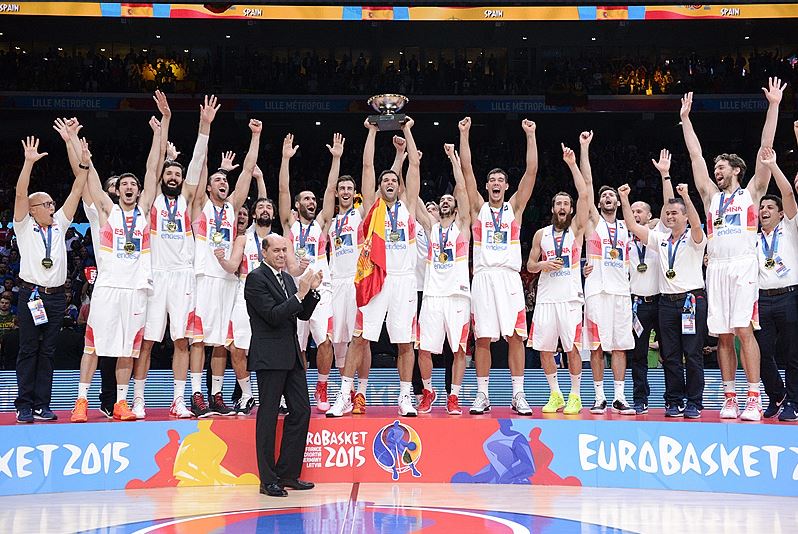 Mynd: Spánverjar fagna þriðja Evrópumeistaratitli sínum í fjórum keppnum (FIBA)