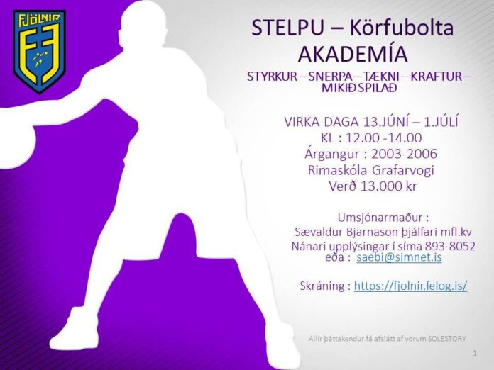 Fjölnir hefur ákveðið að setja af stað körfubolta akademíu fyrir stelpur fæddar 2003-2006. Æfingarnar fara fram í Rimaskóla frá kl:12-14 alla virka daga frá 13. júní til 1. júlí. Umsjónarmaður er Sævaldur Bjarnason þjálfari meistaraflokks kvenna hjá Fjölni. Skráning fer fram hér og kostar litlar 13.000 kr. að taka þátt. Öllum frekari spurningum svarar Sævaldur í síma 893-8052 eða á póstfanginu [email protected].