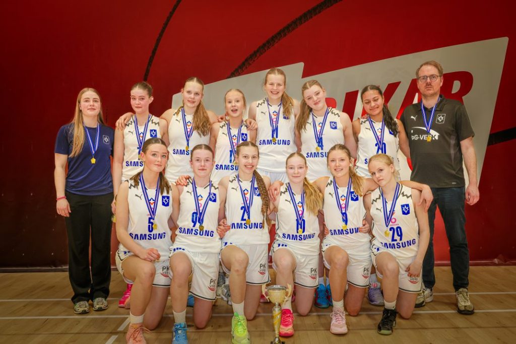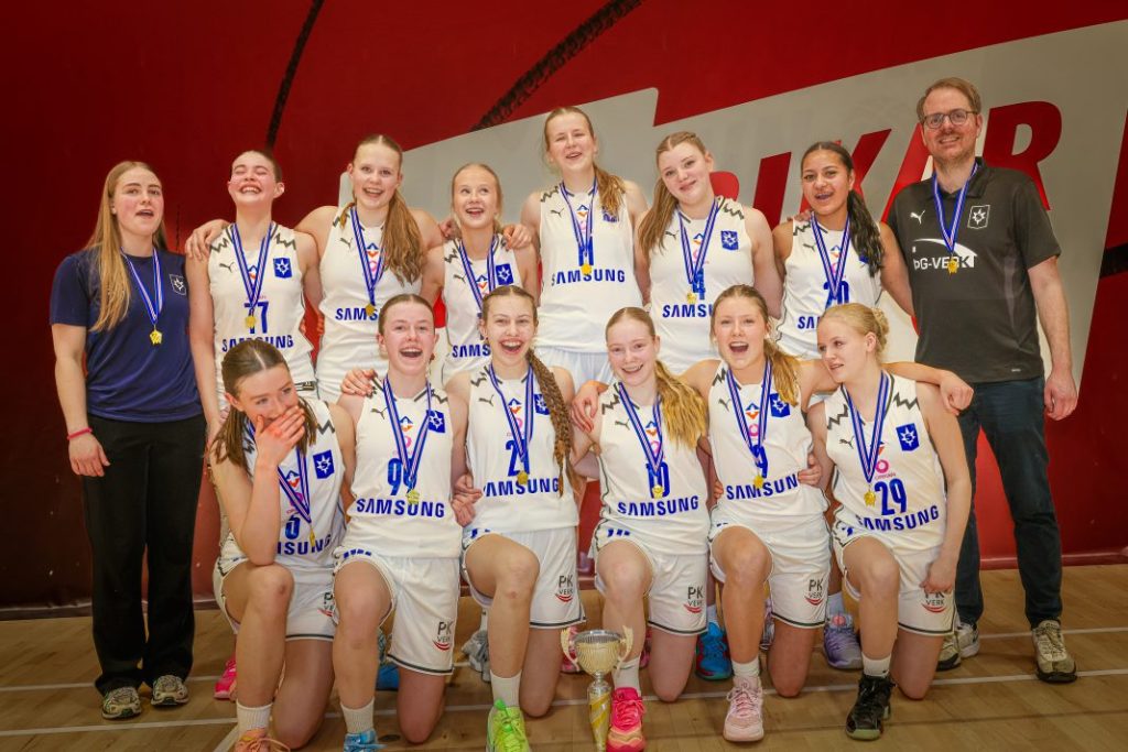 Stjarnan varð bikarmeistari í 9. flokki stúlkna í kvöld eftir sigur gegn Val í æsispennandi tvíframlengdum leik, 68-65.
