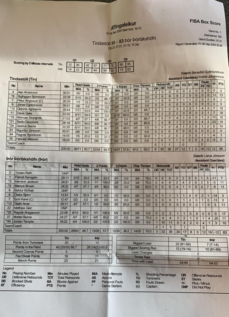 Fyrir Þór var Ragnar Bragason atkvæðamestur með 17 stig, Marcus Brown var með 13 stig, Marreon Jackson, Davíð Arnar Ágústsson og Morten Bulow allir með 11 stig og Jordan Semple með 10 stig.