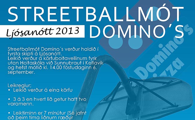 Streetballmót Domino´s fer fram í fyrsta sinn á Ljósanótt í Reykjanesbæ föstudaginn 6. september næstkomandi. Leikið verður á körfuboltavellinum utan við Holtaskóla og hefst mótið kl. 14:00.