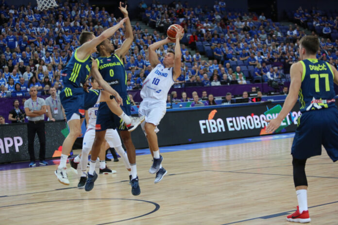 Ekki tókst að ná í fyrsta sigurinn í dag á Eurobasket þrátt fyrir frábæra byrjun gegn Slóvenum. 102:75 varð loka niðurstaða dagsins þar sem að Slóvenar voru töluvert betri en okkar menn. Martin Hermannsson var stigahæstur okkar manna með 18 stig og næstur honum voru Hlynur Bæringsson og Haukur Helgi Pálsson með 14 stig. Þrátt fyrir 27 stiga tap þá má segja að liðið hafi sýnt fína takta á köflum í leiknum en varnarleikurinn var okkur erfiður gegn létt leikandi og sterku liði Slóvena sem eru enn sem komið er ósigrandi á mótinu og spila síðasta leik sinn í riðlakeppni á morgun gegn Frökkum.