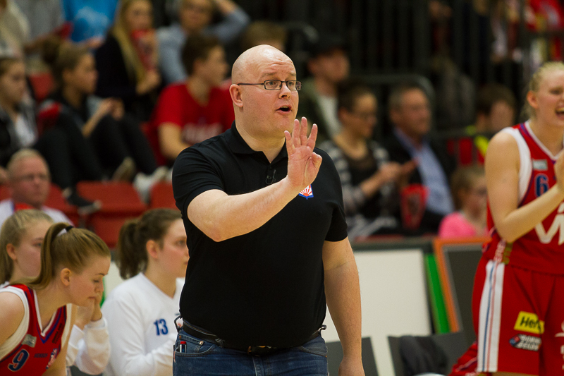Ingi Þór Steinþórsson var kampakátur eftir sigur sinna stúlkna og þriðja Íslandsmeistaratitilsins í röð