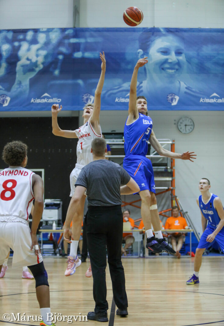 Íslenska U16 landslið drengja lagði sterkt lið Danmerkur í hraðskreiðum og skemmtilegum leik 75-61. Á morgun taka þeir svo á móti stóru liði Eista og stefna á að haldast ósigraðir á mótinu.