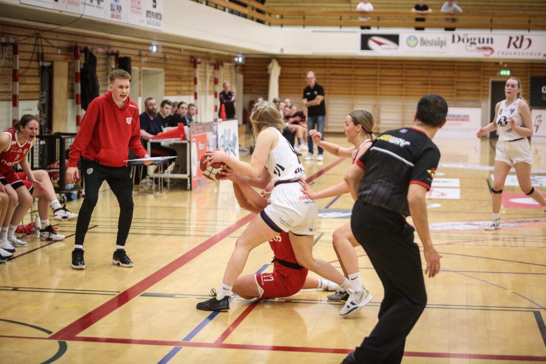 Heimastúlkur í Tindastól náðu að hleypa leiknum upp í öðrum fjórðung, spiluðu hörkuvörn og Emese Vida skoraði fyrstu 7 stig þeirra í leikhlutanum og fór mikinn. Chloe Rae fór að fá betri skot og aðrir leikmenn komust betur inn í leikinn. Þristur frá Ingu Sól kom heimastúlkum í 6 stiga forystu undir lok hálfleiksins en Marín Lind lagaði stöðuna með þrist, staðan 42-36 fyrir Tindastól í hálfleik. Á fyrstu mínútu seinni hálfleiks fékk Emese Vida tæknivillu sem virtist nokkuð soft en þetta var hennar fjórða villa og hún fór beint á bekkinn aftur. Jafnræði var með liðunum og hart barist áfram og gríðarlega fagnað þegar Fanney kom Tindastól í 48-44 um miðjan þriðja leikhluta. Gestirnir svöruðu með 10-3 kafla og leiddu með 3 stigum fyrir lokaátökin.