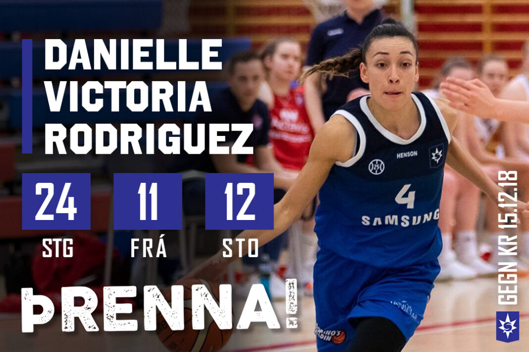 Danielle Victoria Rodriguez setti fyrstu bikarþrennu þessa tímabils er hún og stöllur hennar í Stjörnunni slógu út KR í Geysisbikarnum í dag. Danielle skoraði 24 stig, náði 11 fráköstum og gaf 12 stoðsendingar í þriðju þrennu sinni á tímabilinu.