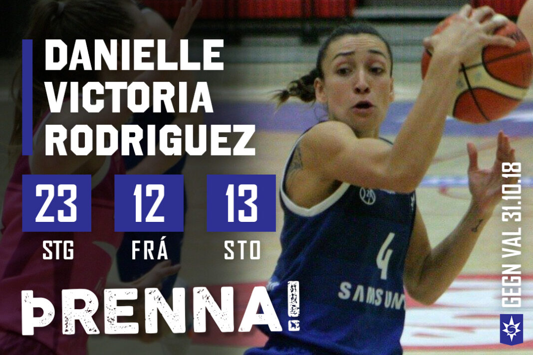 Danielle Victoria Rodriguez náði þrennu í kvöld þegar Stjarnan sigraði Val þar sem hún skoraði 23 stig, tók 12 fráköst og gaf 13 stoðsendingar.