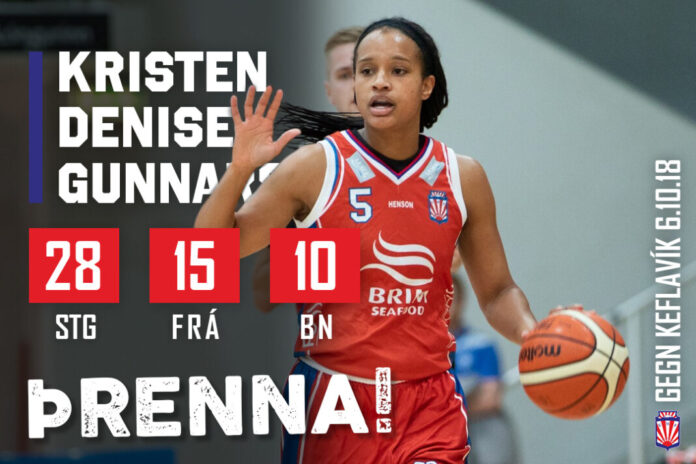 06/10/2018 – Kristen Denise McCarthy, Snæfell – 28 stig, 15 fráköst, 10 stolnir boltar – Sigur