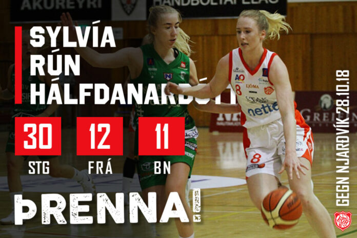 Það er heldur betur fjör í 1. deildum landins þessi dægrin. Þrenna í gær og svo önnur þrenna í kvöld. Það var í 1. deild kvenna þar sem þrennan lenti í kvöld er Sylvía Rún Hálfdanardóttir setti eina ansi glæsilega er Þór Akureyri sigraði Njarðvík. Þar var hún með 30 stig, 12 fráköst og 11 stolna bolta.