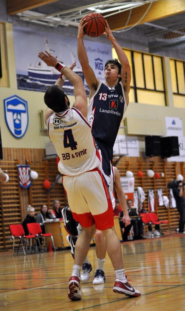 Ljósmynd/ Tomasz Kolodziesjki: Hörður Axel sækir að Hlyni Bæringssyni í öðrum leiknum í Stykkishólmi. Mikið mun mæða á þessum tveimur sterku leikmönnum í dag.