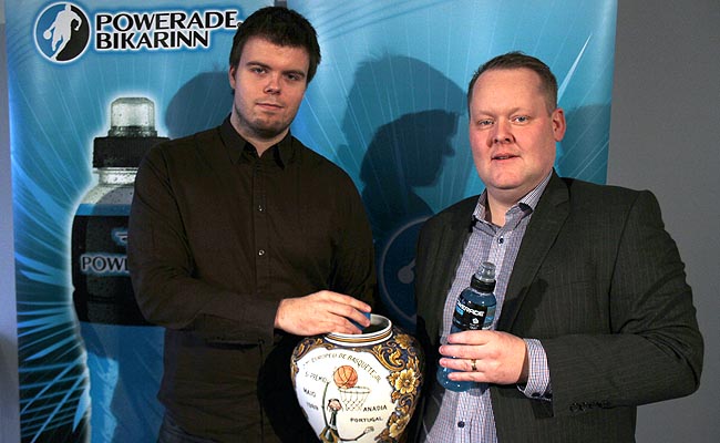 Mynd/ [email protected]: Hannes S. Jónsson, formaður KKÍ, til hægri ásamt Gunnari Lár Gunnarssyni markaðsstjóra Powerade á Íslandi.