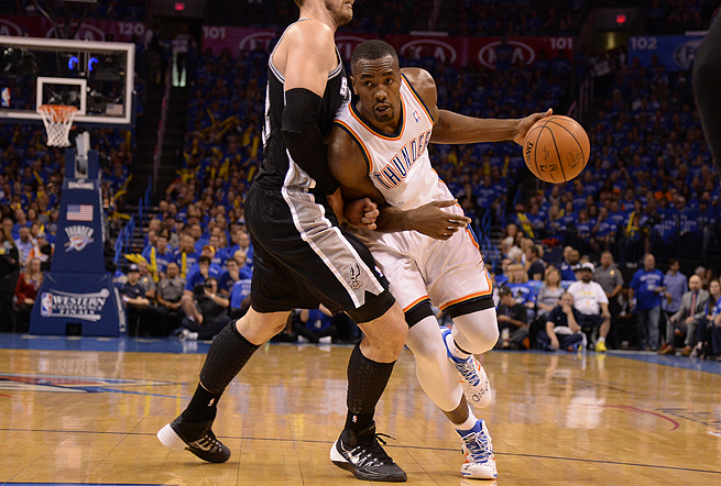 Hjá Thunder gekk allt að óskum. Teigurinn var lokaður af Ibaka og hægt var að spila stífari vörn á leikmenn Spurs úti á vængnum. Ibaka setti einnig niður skotin sín að utan sem teygði vel á vörninni og gerði öðrum leikmönnum kleift að keyra inn í teiginn án vandræða.
