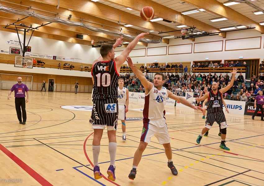 Hittni heimamanna var ekki góð en vörnin hélt þeim inni í leiknum. Í öðrum fjórðung skánaði spilamennska heimamanna aðeins og þeir komust fljótlega yfir með góðum þrist frá Arnþóri og komust svo í 14 stiga forystu þegar skammt var eftir af fyrri hálfleik með þristi frá Pálma Geir sem spilaði ekki mikið í kvöld. Mirko lagaði stöðuna fyrir leikhlé 42-30.