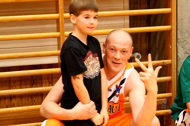 Mynd: Teitur og sonur hans Aron í góðgerðaleik UMFN hér um árið.