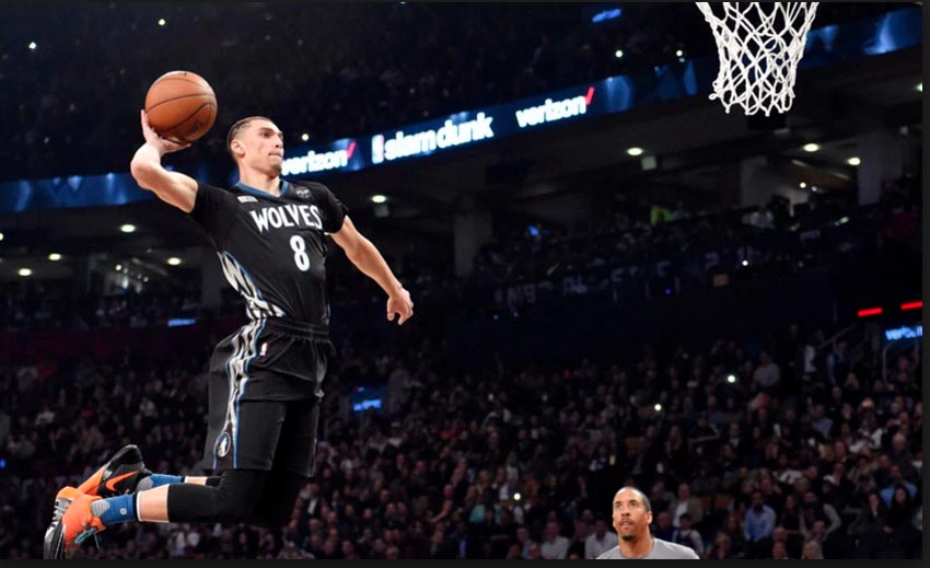Stjörnuhelgi NBA lauk í nótt og eins og áður hefur komið fram hafði vestrið sigur, stigamet féll og varnir voru á léttarni nótunum en menn eiga að venjast. „Splash“-bræður létu til sín taka í þriggja stiga keppninni þar sem Klay Thompson hafði sigur en kappinn sallaði niður 25 stigum. Þá var troðslukeppnin eins og krakkarnir segja, „ í bullinu.“ Nokkrum náttúrulögmálum var ögrað það, sjón er sögu ríkari en Wolves-maðurinn Zach LaVine fór heim sem troðkóngur helgarinnar í einni rosalegustu troðslukeppni síðari ára.
