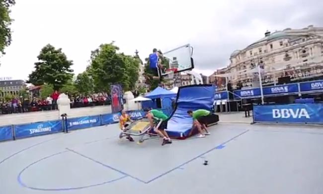 Botond Dajka á líkast til einhverja villtustu trampólín-troðslu sem um getur en á „Streetball“-viðburði í Bilbao á Spáni á dögunum bauð Botond upp á magnaða loftfimleika. Sjón er sögu ríkari: