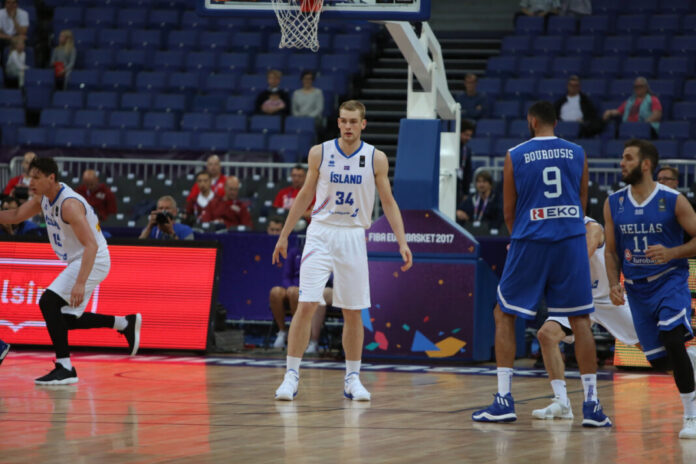 Tryggvi á stærstu tilþrif dagsins hjá Íslenska liðinu er hann hlóð hamarinn og skellti í eina „put-back“ troðslu á góðri íslensku.