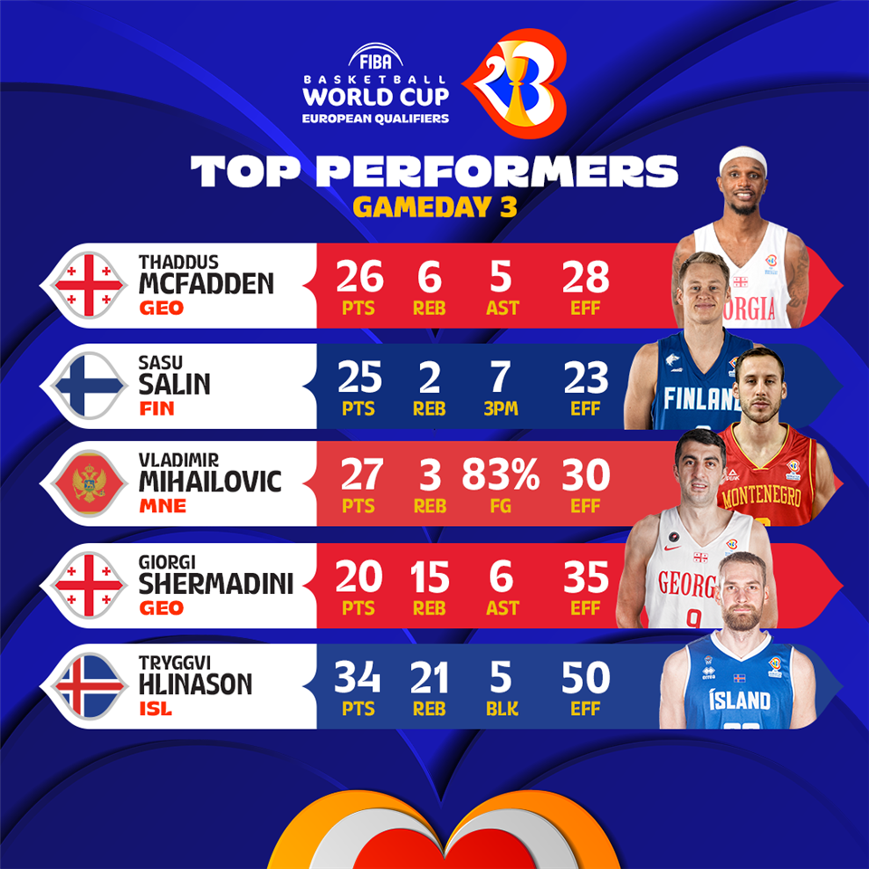 Leikmaður Íslands Tryggvi Snær Hlinason var valinn í lið umferðarinnar í undankeppni HM 2023 fyrir frammistöðu sína í glæsilegum sigri Íslands gegn Ítalíu síðastliðinn fimmtudag.
