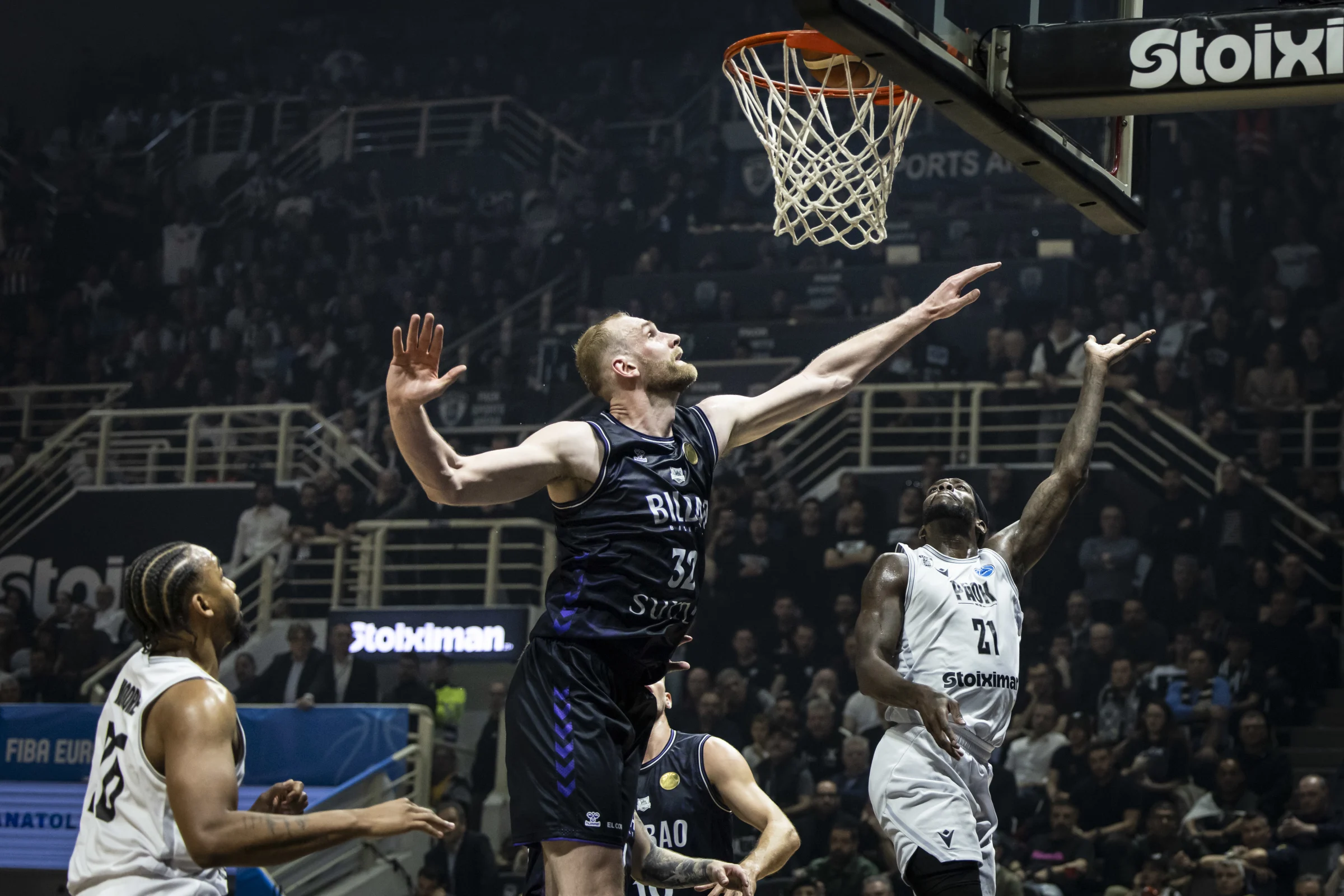 Tryggvi Snær Hlinason og félagar í Bilbao þurfa að vinna upp sex stiga mun í síðari úrslitaleik FIBA Europe Cup eftir 79:73 tap gegn PAOK í Grikklandi í dag. Íslenski landsliðsmiðherjinn var atkvæðamikill í liði ríkjandi meistaranna en hann skilaði sjö stigum, níu fráköstum og tveimur stoðsendingum á þeim hálftíma sem hann dvaldi inni á vellinum í Thessaloniku.