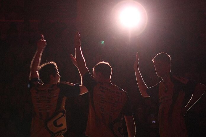 „Miðarnir rjúka út, þetta eru um 1000 manns sem rúmast í húsinu og það liggur ljóst fyrir að það verður staðið í stúkunni,“ sagði Óli Björn. Hér í eina tíð þegar húsið var með gólfdúk sem leikvöll var pöllum komið fyrir aftan við varamannbekki en þess nýtur ekki við í dag.