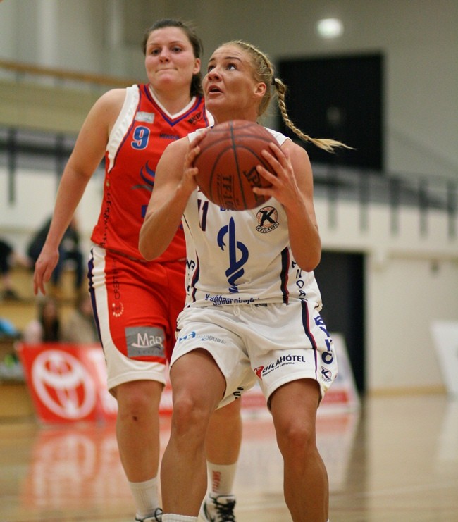 Jafnt var á tölum allt fram í miðjan annan leikhluta, en þá loksins fór Keflavíkurvélin í gang og þær gengu á lagið. Áður en háflleiksbjallan blés þá höfðu Keflavík komið sér í þægilegt 14 stiga forskot og toppuðu það með því að Pálína Stella Gunnlaugsdóttir skoraði flautukörfu, fallegt stökkskot úr miðjum teignum.