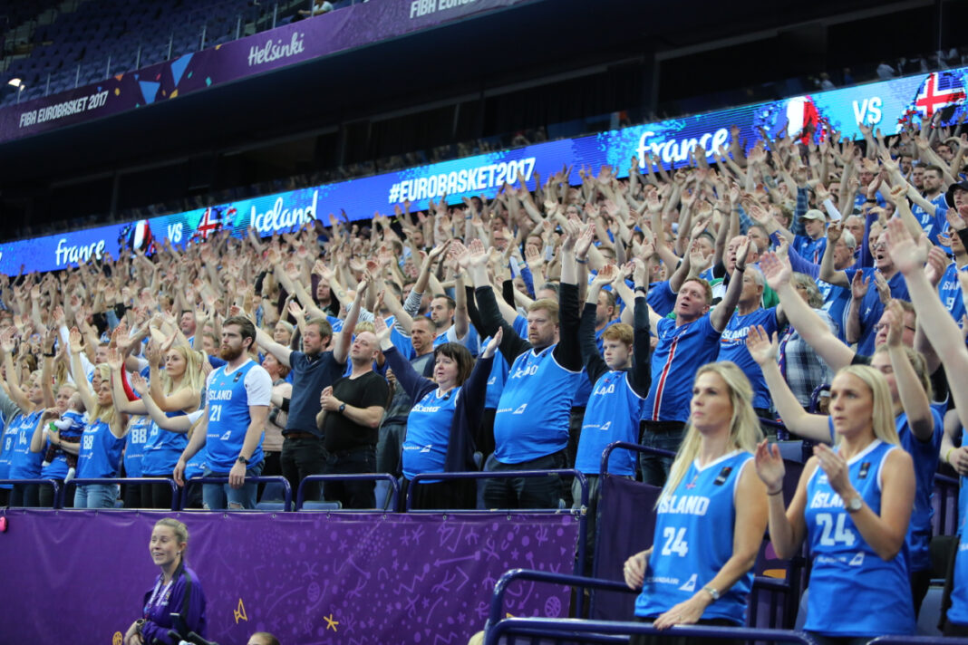 Samkvæmt forsvarsmönnum KKÍ er uppselt á Hartwall Arena í Helsinki í kvöld á leik Íslands og Finnlands. Stuðningsmenn beggja liða hafa slegið heldur betur í gegn á mótinu en fullt hefur verið á alla leiki Finnlands á mótinu.