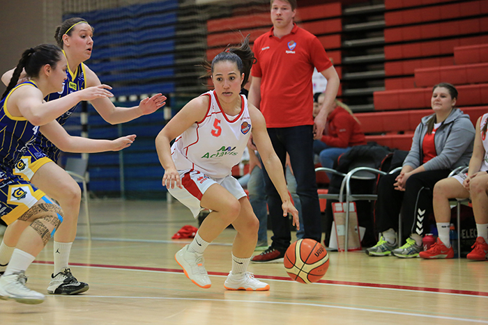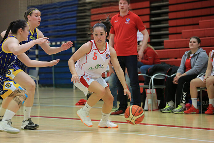 Mynd: Shanna Dacanay skoraði 9 stig fyrir Hauka í kvöld. (Axel Finnur)
