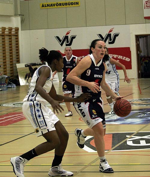 Keflavík er komið áfram í Poweradebikarkeppni kvenna eftir öruggan 61-89 sigur á Fjölni í Dalhúsum í dag. Jaqueline Adamshick átti enn einn stórleikinn í liði Keflavíkur en að þessu sinni setti hún 28 stig og tók 20 fráköst!