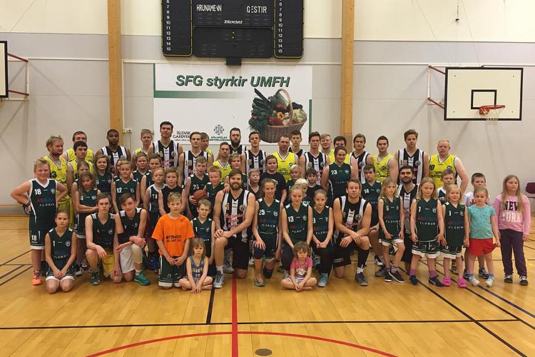 Fimm leikir fóru fram í 32 liða úrslitum í Poweradebikarkeppni karla í dag. Blásið var til veislu að Flúðum þar sem Hrunamenn tóku á móti Íslandsmeisturum KR, flatbökur og fjör en þeir röndóttu gáfu engin grið og kláruðu leikinn 46-108.