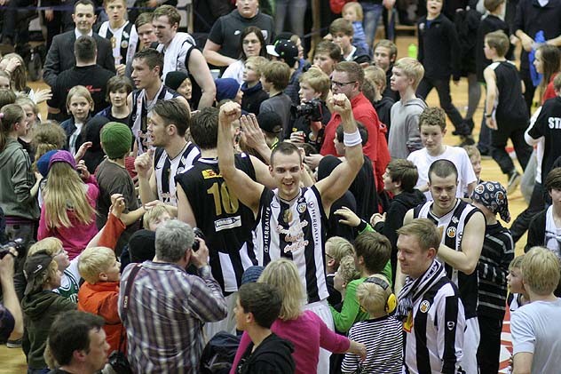 Mynd/ KR-ingar fögnuðu vel og innilega í DHL-Höllinni í kvöld.