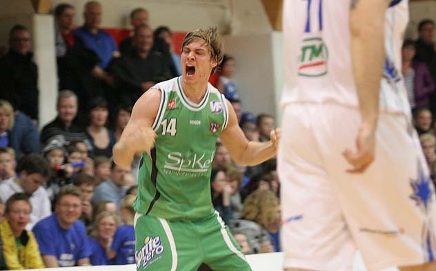 Ljósmynd/ Jóhann Árni Ólafsson tók góðar rispur fyrir Njarðvíkinga í kvöld. Hér fagnar hann eftir stóran þrist í síðari hálfleik.